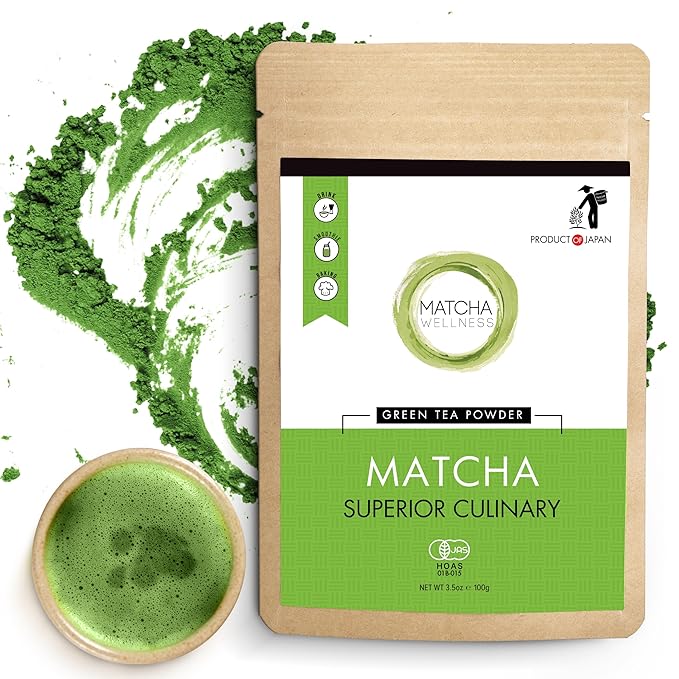 Matcha Wellness Superior Culinary Grade Organic Matcha Powder – 3.5oz Authentic Japanese Green Tea Powder from Kyoto – Perfect for Matcha Lattes, No Additives, Unsweetened