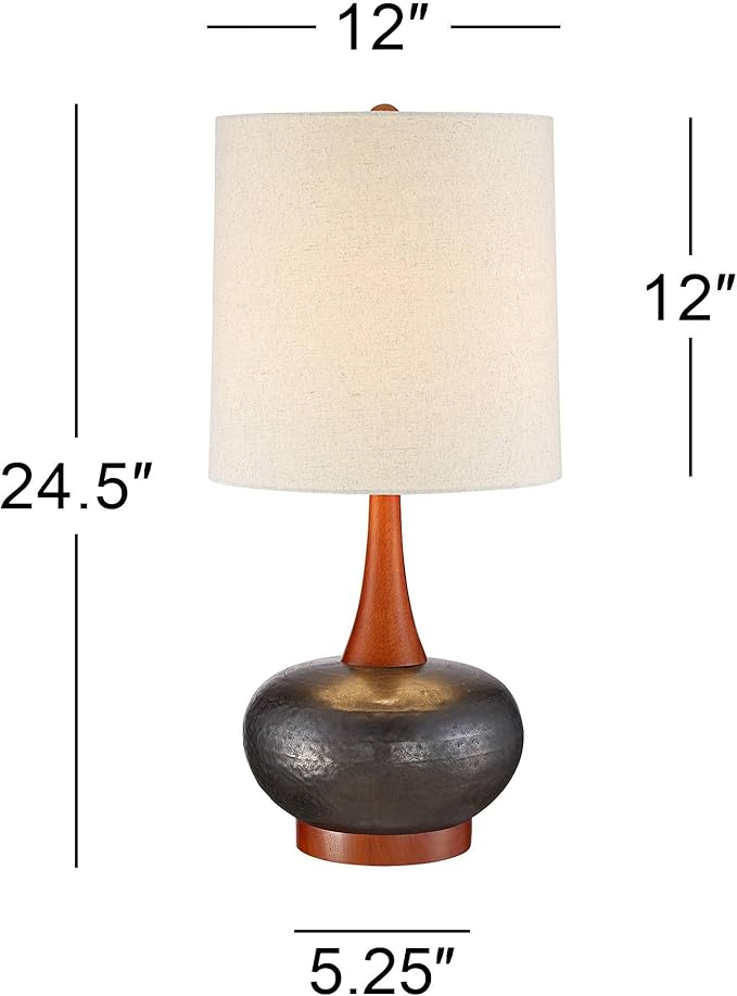 360 Lighting Andi Mid Century Modern Table Lamp 24.5" High Hammered Bronze Ceramic Wood Off White Tall Drum Shade for Living Room Bedroom House Bedside Nightstand Home Office (Color May Vary)