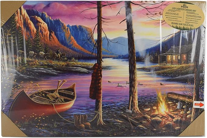Rivers Edge Products 24" x 16" LED Canvas Wall Art - Light-Up Fiber Optic Wall Decor - Battery-Operated, Lighted Canvas Print - LED Light Home Decor for Office, Bedroom, Kitchen -