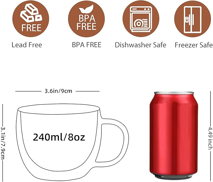 - KEEPS YOUR COFFEE HOT FOR LONGER:Double walled,hand blown glass insulation keeps your coffee hot and your hand cool.No sweat! Also works great for your favorite icy cold drink.