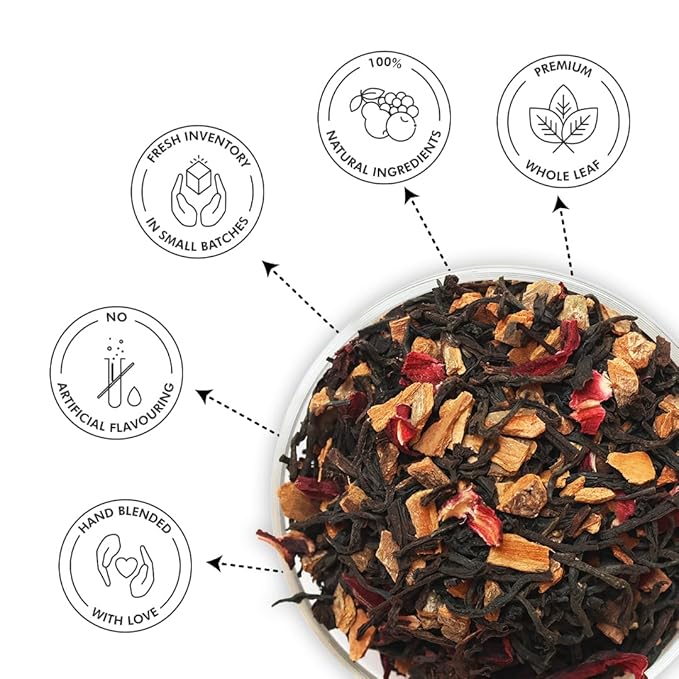 - Tasting Notes – Enjoy a tangy hibiscus profile with a malty black tea base and a full-bodied richness, perfectly balanced with the warming spice of cinnamon.