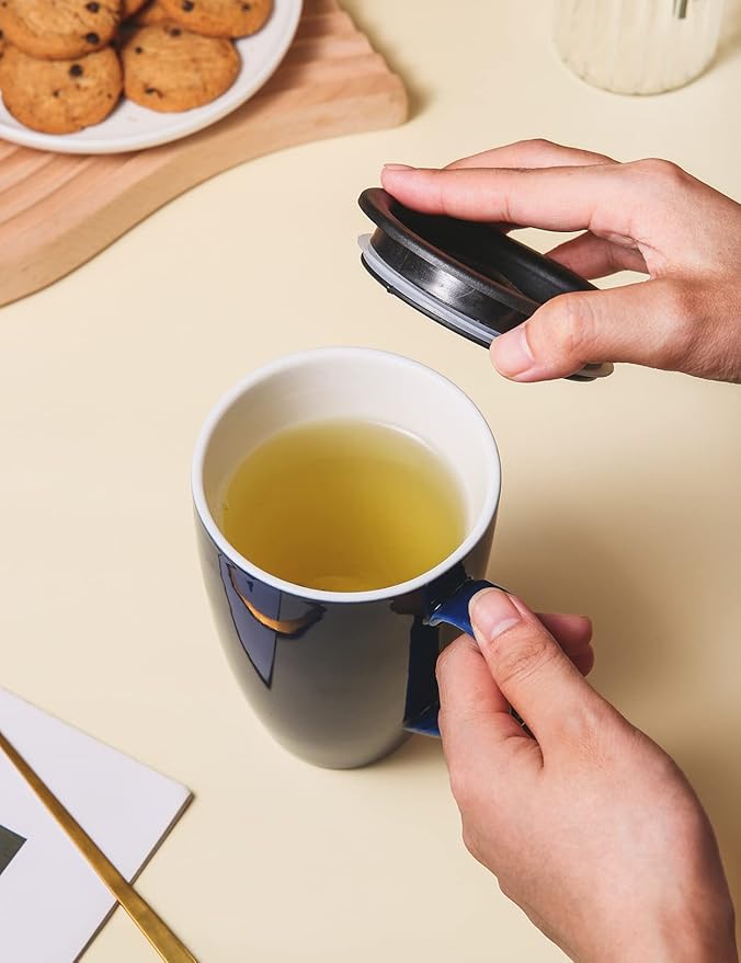Tea Cup with Infuser and Lid, 17 oz Large Tea Infuser Mug with 2 Lids, Ceramic Teacups for Women, Men, Kids, Loose Leaf, Gifts