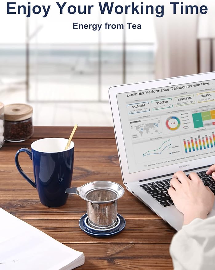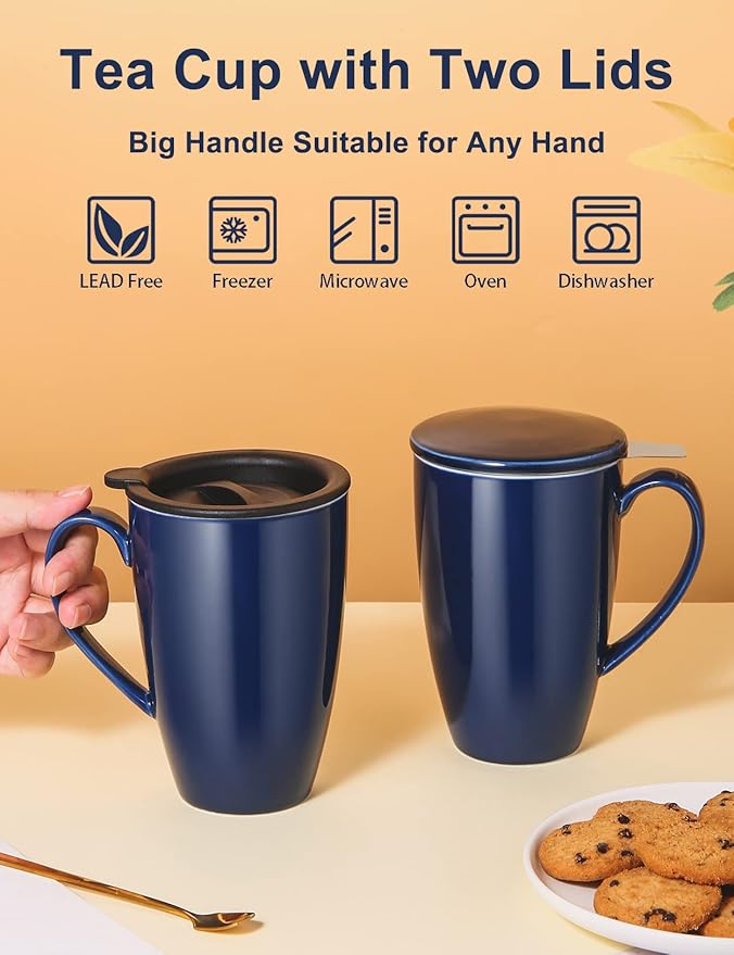 - BEST GIFTS: Perfect 17 ozs capacity, stylish modern shape and unique handmade technology that will be the perfect gift for your friend, family, lover and colleague. The charming navy blue color will make men and women love it. Tea infuser cup is suitable for various holiday gifts, such as Valentine's Day, Mother's Day, Father's Day, Thanksgiving Day, Christmas Day and New Year