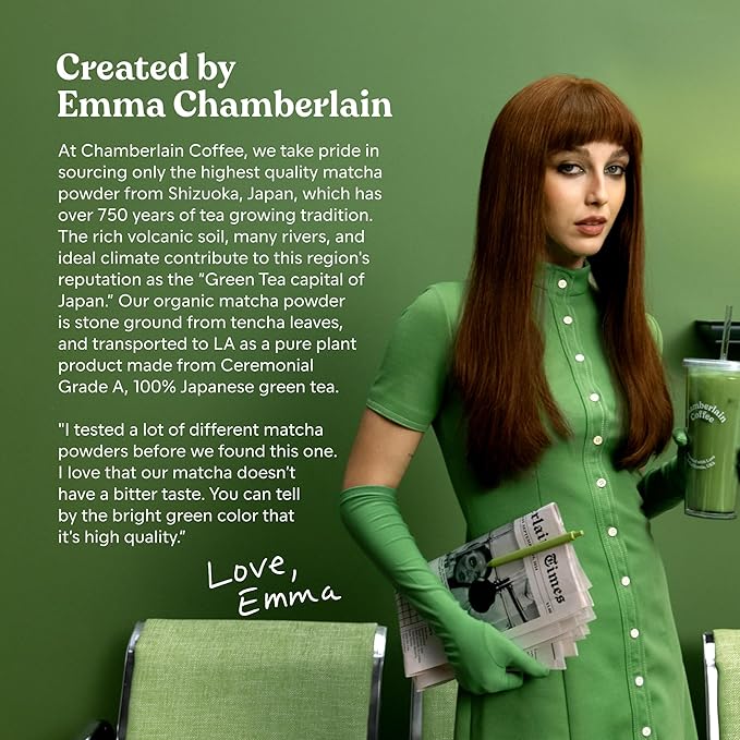 Chamberlain Coffee Ceremonial Matcha Green Tea Powder - Japanese Green Tea + Original Grade Matcha - Hot or Iced - Organic, Vegan & Gluten-Free Matcha Powder, 1.06 oz