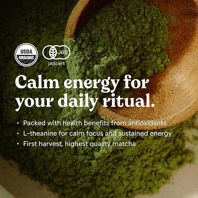 - QUALITY INGREDIENTS – Our Japanese ceremonial grade matcha is made with 100% pure matcha leaves for superior flavor. Certified USDA organic, vegan, and gluten-free, this organic matcha powder preserves its freshness naturally, making it consistently good and fresh. Each serving captures the essence of fresh high grade matcha, delivering authentic quality in every cup. Ideal for preparing a traditional matcha tea, creamy matcha latte, or smooth pure matcha powder drink.
