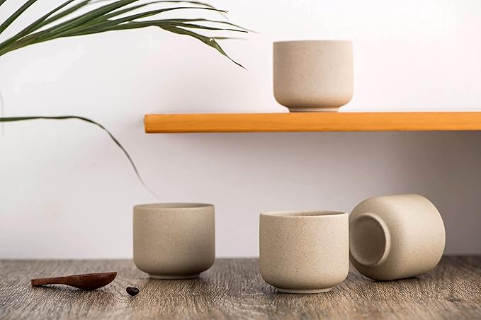 - Retro Design Style -- Handcrafted clay mugs,using stoneware, symbolizing natural simplicity and purity, showing the touch and appearance of a real unglazed ceramic surface, bringing a nice and special touch to tea lovers when enjoying tea soup, the smooth and flat surface is finely processed Sanded and easy to clean. These ergonomic porcelain Japanese tea cups are an elegant way to serve your family and friends.