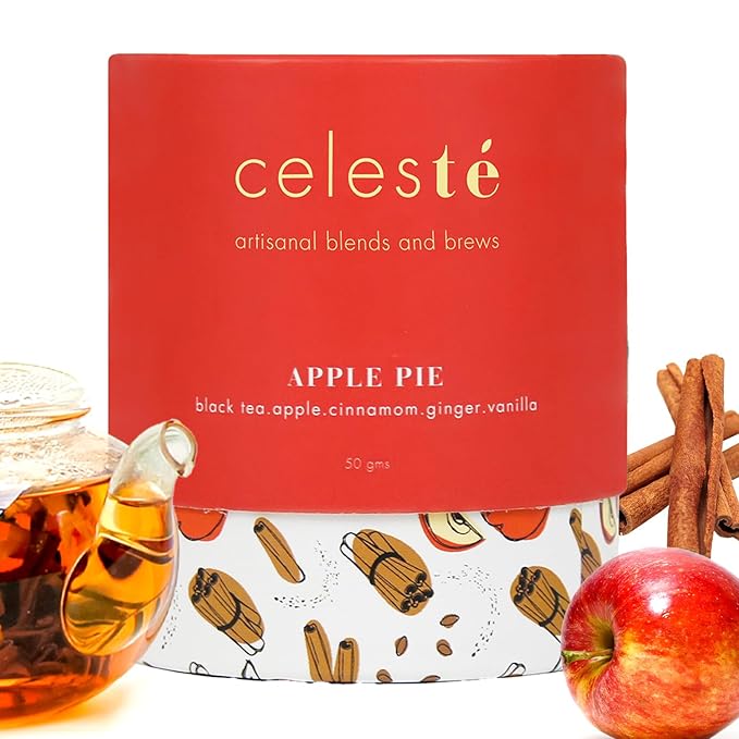 - Rich & Aromatic Blend – Celeste Apple Pie Black Tea is a premium loose leaf apple cinnamon tea that brings together bold black tea, real apple pieces, cinnamon, ginger, and vanilla for a nostalgic, cozy sip inspired by freshly baked apple pie tea.