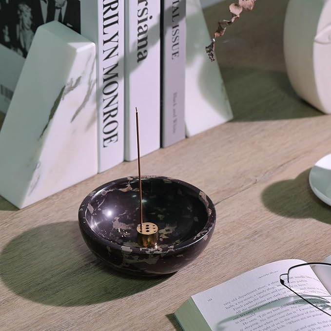 - Versatile Marble Bowl: Incense burning, peace coming. The incense holder for sticks can be widely used in living room, bedroom, office, meditation room, yoga room, hotel etc. you could use this as a jewelry dish or candy dish even. Or use it as your elegant jewerly bowl!