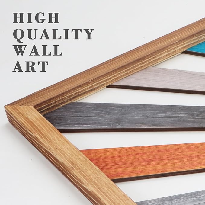 - 【Sun Wood Wall Art】This sun-framed bohemian wall art is designed with colorful rising sun wall decoration. Different colors are printed on the lines of wooden boards, forming a warm rainbow color, which conforms to the artistic aesthetic concept of modern wall decoration in the middle of the century and is simple and atmospheric. This rainbow sun wood wall decor will make you feel bathed in sunshine and make your space charming!