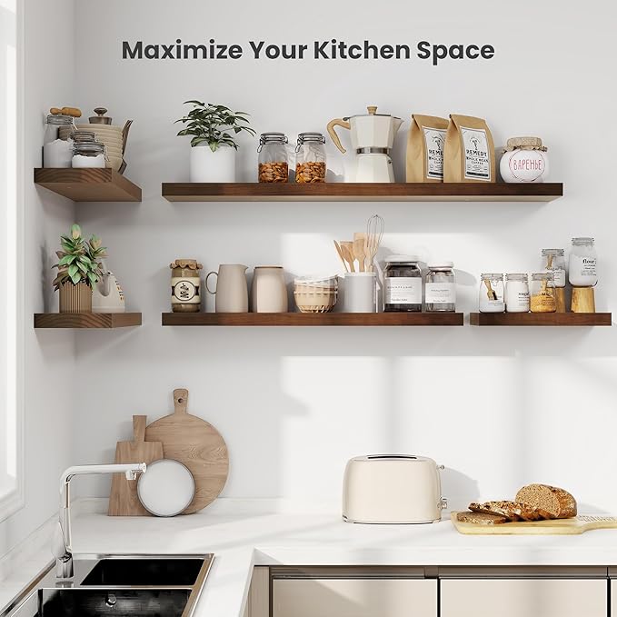- 【Multifunctional Decorative Shelf】- The floating shelves are designed for decoration and storage, utilizing and decorating the wall space.Perfect for use as bedroom display shelves to showcase your collection, books, or prized possessions. Use our shelves to display photo frames, small plants, or audio equipment in your living room, office, or study. You can even use them in your bathroom to hold toiletries or as a kitchen shelf for condiments.