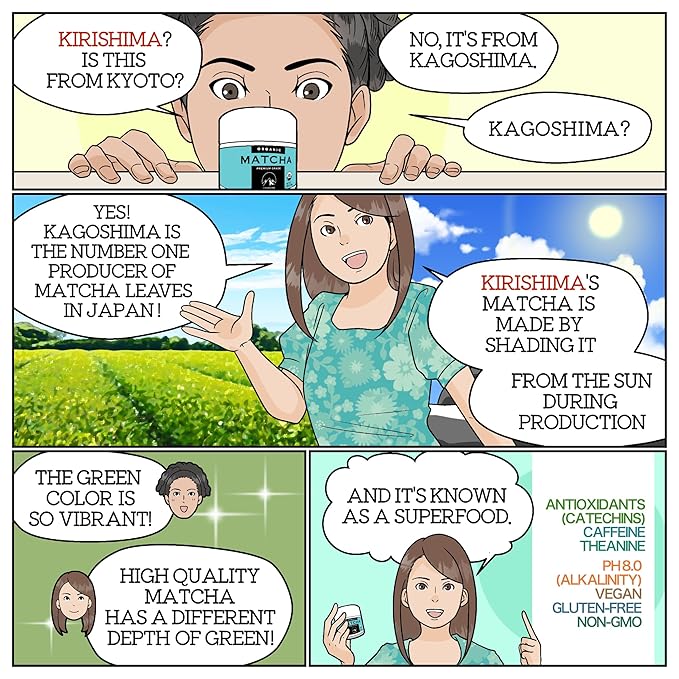 - ✅️Experience the rich and vibrant green color of Kirishima Matcha, a premium grade tea selected by a 10th level tea master