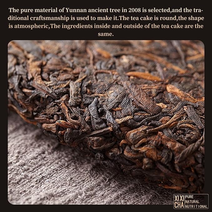 XIXICHA Pu-erh Tea Cake 357g/12.6oz Ancient Trees Ripe Puerh Tea 2008 Years Chinese Yunnan Pu’er Tea BlackTea Fermented Traditional Craft 普洱茶 熟茶 古树普洱茶 云南勐海