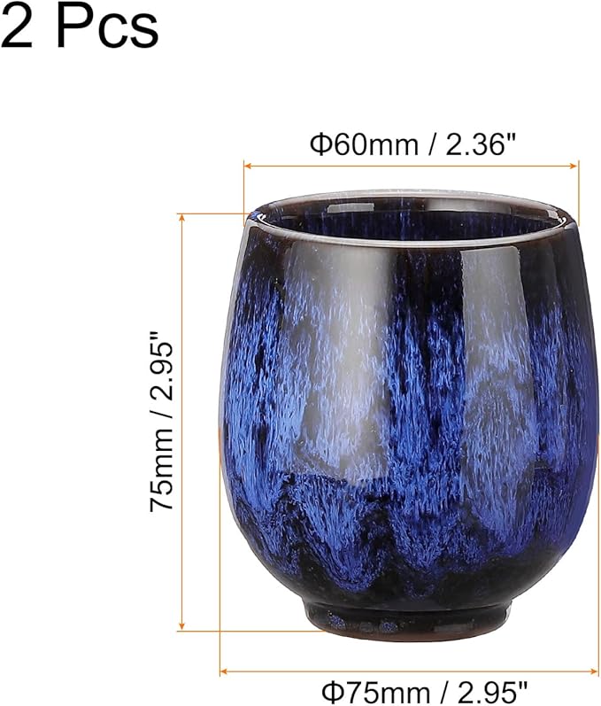 - Size - Cup Height: 75mm / 2.95"; Widest Diameter of Cup: 75mm / 2.95"; Diameter of Cup Mouth: 60mm / 2.36"; Capacity: 160ml / 5.41oz; Weight: 304g / 10.72 Ounces; Package Include: 2 x Ceramic Teacup.