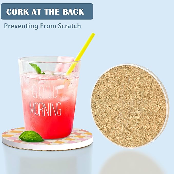 - Non-slip Bottom:Our absorbent coasters come with a soft cork backing design that prevents scratches and marks on your furniture,while also providing a secure grip on any surface