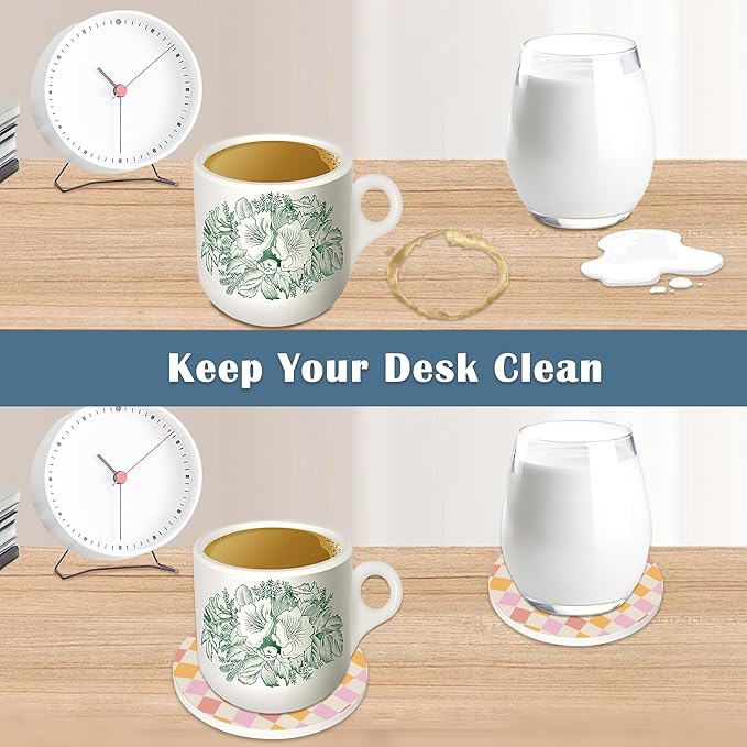 - Suitable Size:Coasters with a big 4 inches diameter size match almost all types of cups and mugs,making them fit with coffee cups, sports bottles and wine