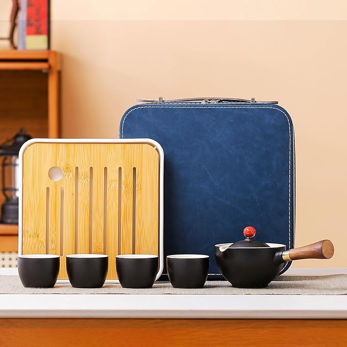 - [Portable and Practical]: This tea set is designed for easy portability, making it perfect for outdoor adventures, business trips, or family gatherings. Compared to traditional soft canvas tea bags, we’ve upgraded the storage bag to a stronger, higher-quality travel leather bag. This new bag not only enhances smoothness and pressure resistance, but it also ensures your tea set is safer to carry, immune to small bumps and stackable storage, and much easier to clean.