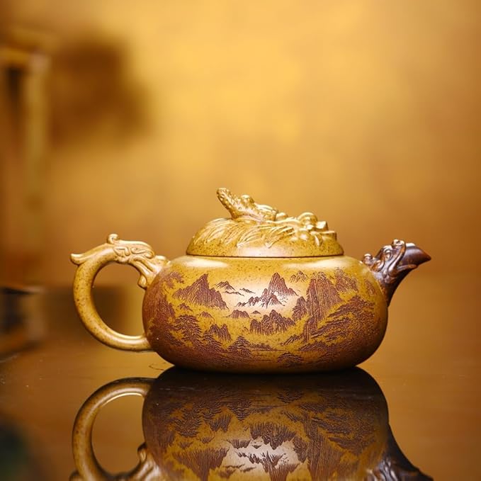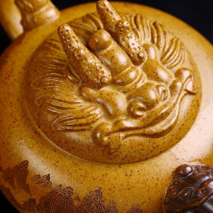 Genuine Yixing Clay Teapot 12 Oz, Chinese Handmade Golden Yellow Clay Zisha Tea Pot,Infuse Brew Kung Fu Tea Maker -Dragon