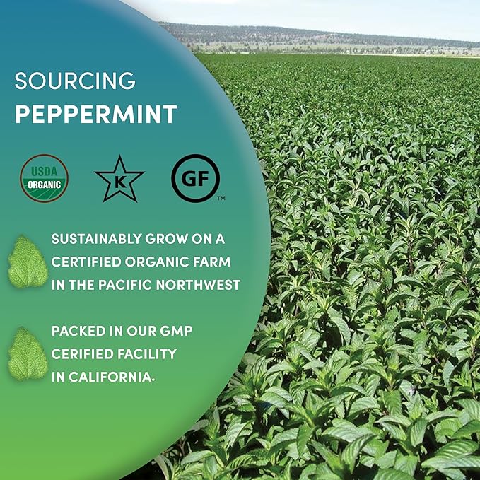 - 100% PURE PEPPERMINT LEAVES: Grown organically in the Pacific Northwestern United States without any chemical inputs or sprays. No preservatives, artificial ingredients or adulterants. Packed in a resealable ziplock pouch for freshness and protection. Kosher, Non-GMO.