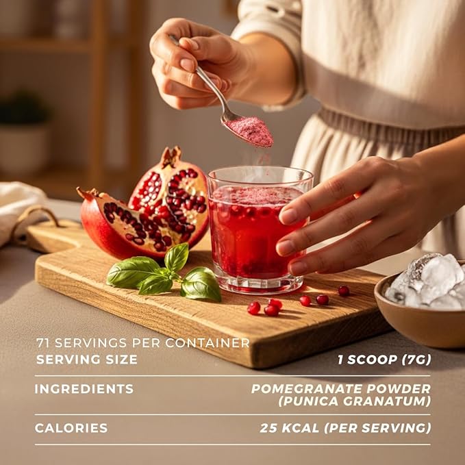 - Balance that fits your lifestyle. Add pomegranate powder to your morning routine for easy nutrition. It supports daily vitality and blends smoothly into smoothies or juices for a simple, health-focused start to your day.
