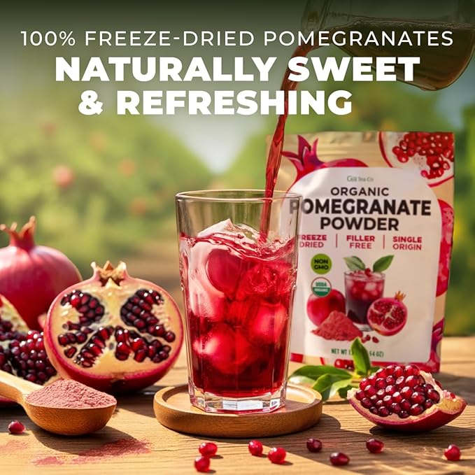 Gya Tea Co Pomegranate Powder 1.1lb (17.64 Oz) – 100% USDA Organic Freeze-Dried Whole Fruit – Antioxidant Rich Superfood For Drinks & More – Immunity & Energy Boost – Non-GMO, Gluten-Free, Sugar-Free