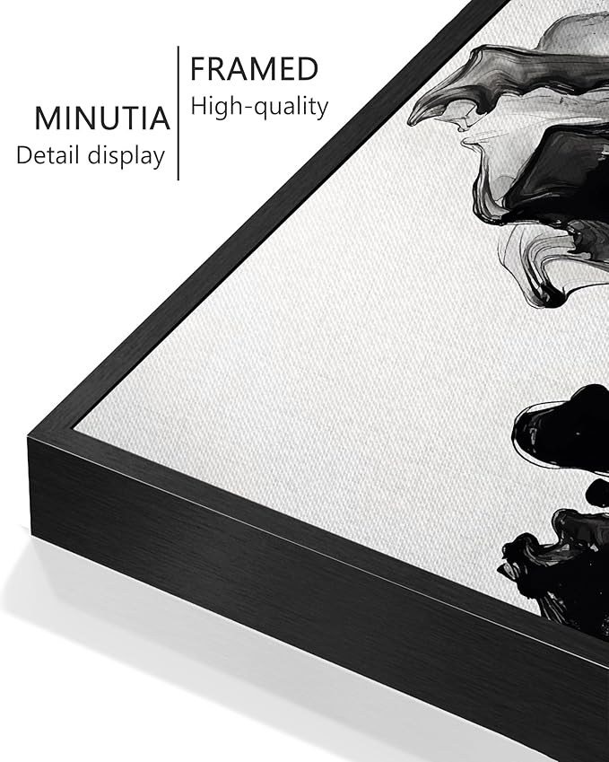 KUVIOKE Black White Abstract Framed Canvas Wall Art Ink Wash Pastel Wall Decor Modern Rendering Illustration Art Painting for Bedroom Dining Room 12x16in (Black Framed)