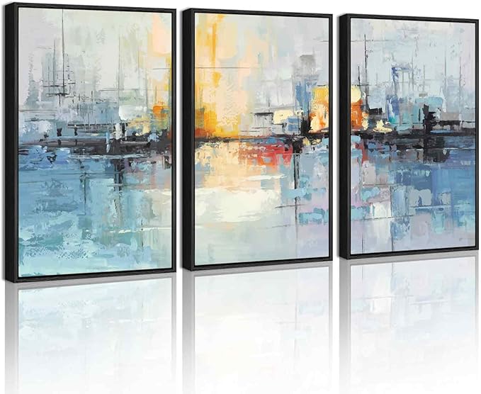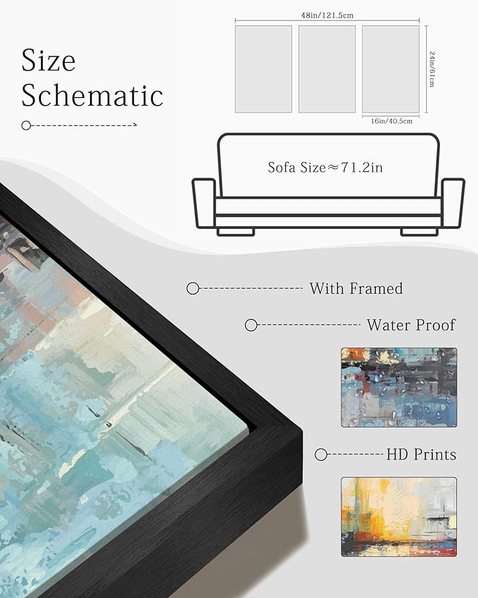 - Sturdy Frame & Easy Installation - Each 16x24 inch blue landscape abstract framed artwork has a direct hanging groove on the back and is equipped with traceless nails, ready to hang.