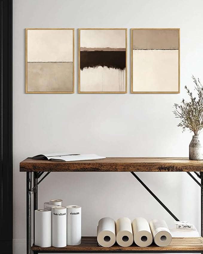 - Neutral Abstract Art - Featuring minimalist line designs and textured beige tones, this black abstract framed wall art draws inspiration from mid-century modern aesthetics, adding timeless elegance to any space.
