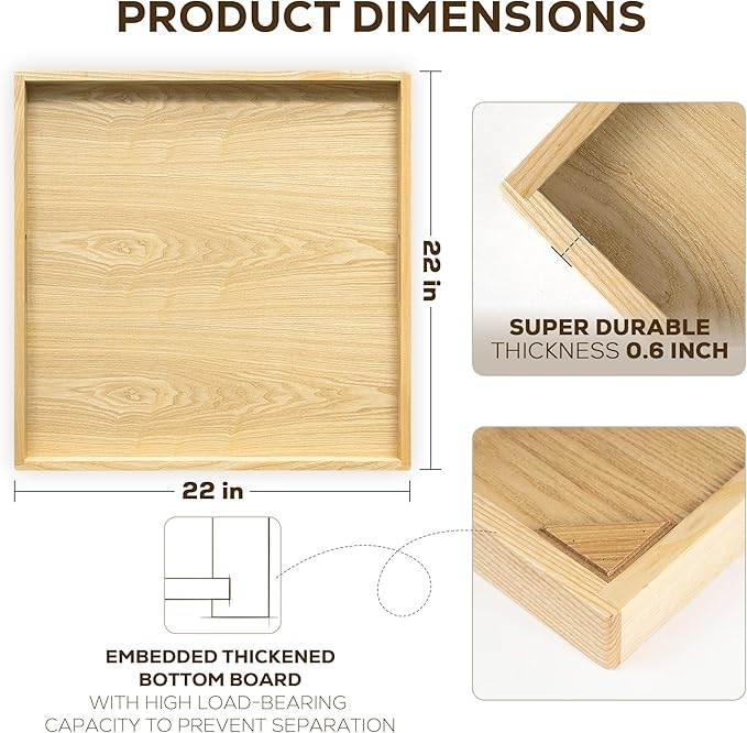 - Crafted from premium Ash wood, this large wooden tray boasts unique grain patterns and rich hues, making it both a beautiful and functional work of art for your home.