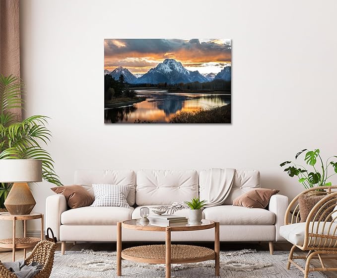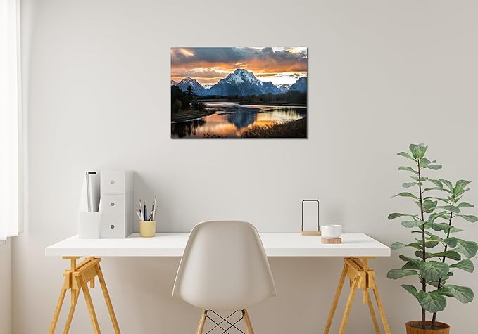 SKASNFAI Grand Teton National Park Canvas Wall Art Mountain Landscape Print Picture Framed Nature Wall Decor for Living Room Office (16L x 24W)