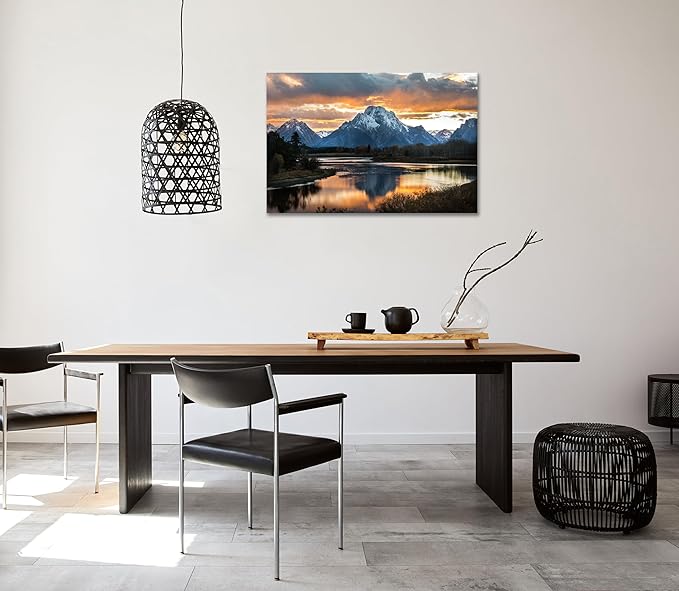 SKASNFAI Grand Teton National Park Canvas Wall Art Mountain Landscape Print Picture Framed Nature Wall Decor for Living Room Office (12L x 16W)