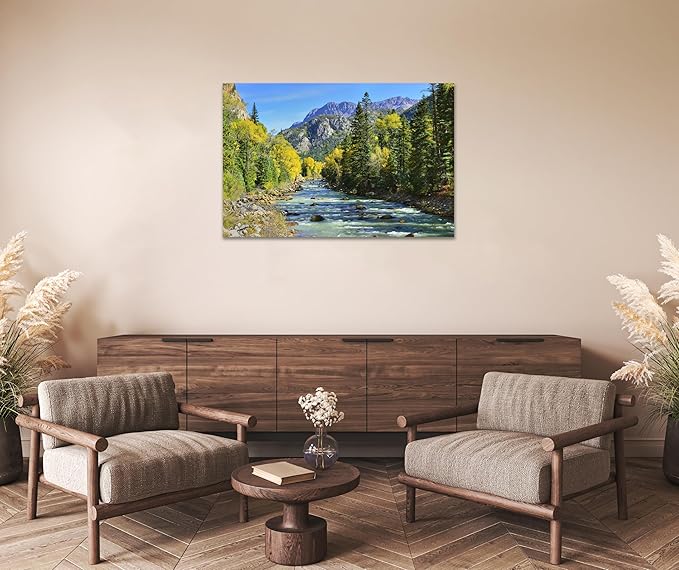 SKASNFAI Colorado River Wall Art Colourful Mountains Stream for Pictures Office Decor Living Room Nature Landscape Photography Artwork Print Framed (20L x 30W)