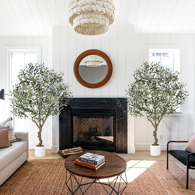 - Bringing Nature Indoors - Transform your space with our olive trees artificial indoor! This 6ft olive tree, a stunning artificial olive tree indoor, seamlessly brings nature’s beauty indoors with its lifelike trunk, lush leaves, and elegant white planter. Perfect for creating a serene ambiance, this faux olive tree 6ft adds natural charm to any room without the hassle of real plants. The artificial olive tree’s realistic design makes it hard to tell apart from the real thing.