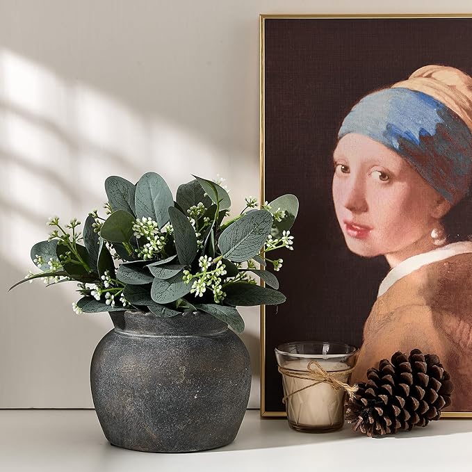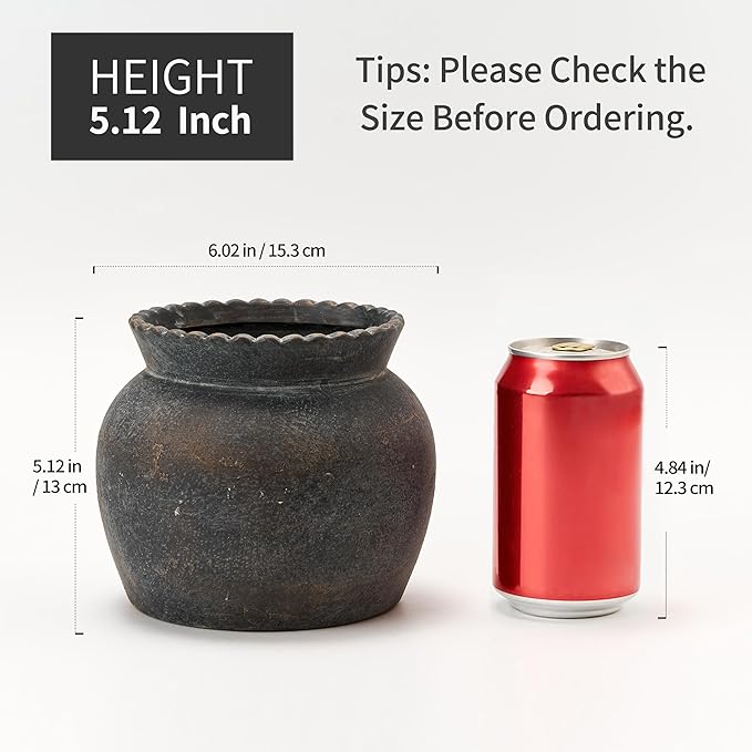 - 𝐌𝐞𝐚𝐬𝐮𝐫𝐞𝐦𝐞𝐧𝐭𝐬: The small rustic vase measures 5.12" height and 6" width with 4.3" opening.Perfect for greenery and dry or faux florals,but also can hold water for fresh flowers.The vase itself can be displayed indoors or outdoor as a fine decorative piece.