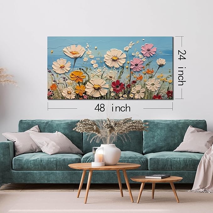 - SIZE OF WALL ART: Titled "Colorful Floral". The size of wall art decor is 48"L x 24"W (120cm x 60cm)