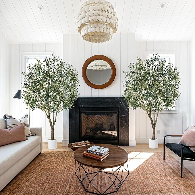 - ✅ Lifelike 7ft Design & Instant Decor: This olive tree artificial indoor 7ft features a natural wood trunk with lifelike fruits. Pre-assembled with a sturdy white planter, it creates instant Mediterranean elegance. Vibrant leaves sway like real faux olive trees, transforming offices or living rooms effortlessly.
