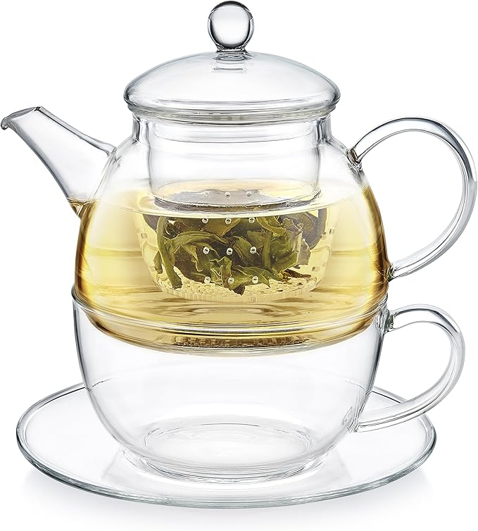 - Complete 5-Piece Collection – Includes glass teapot with lid, teacup, saucer, and two premium infusers for all varieties of tea.